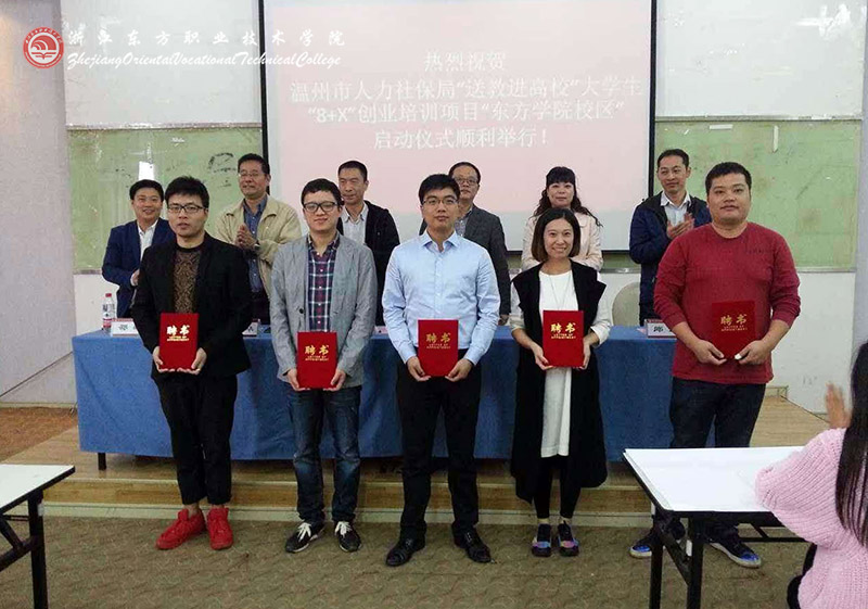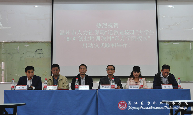 11月10日下午,温州市人力资源与社会保障局“送教进校园”大学生“8+X”创业培训项目“东方学院校区”启动仪式在学院第三会议室举行。温州市人力资源与社会保障局副局长胡正长,温州市人力资源培训学校校长金晓鸿、我院院长胡新根、副院长贺文华出席,学工部(团委)负责人、各系党总支副书记、人社局相关工作人员、课程讲师及学员代表参加,创业学院院长邵曦主持启动仪式。