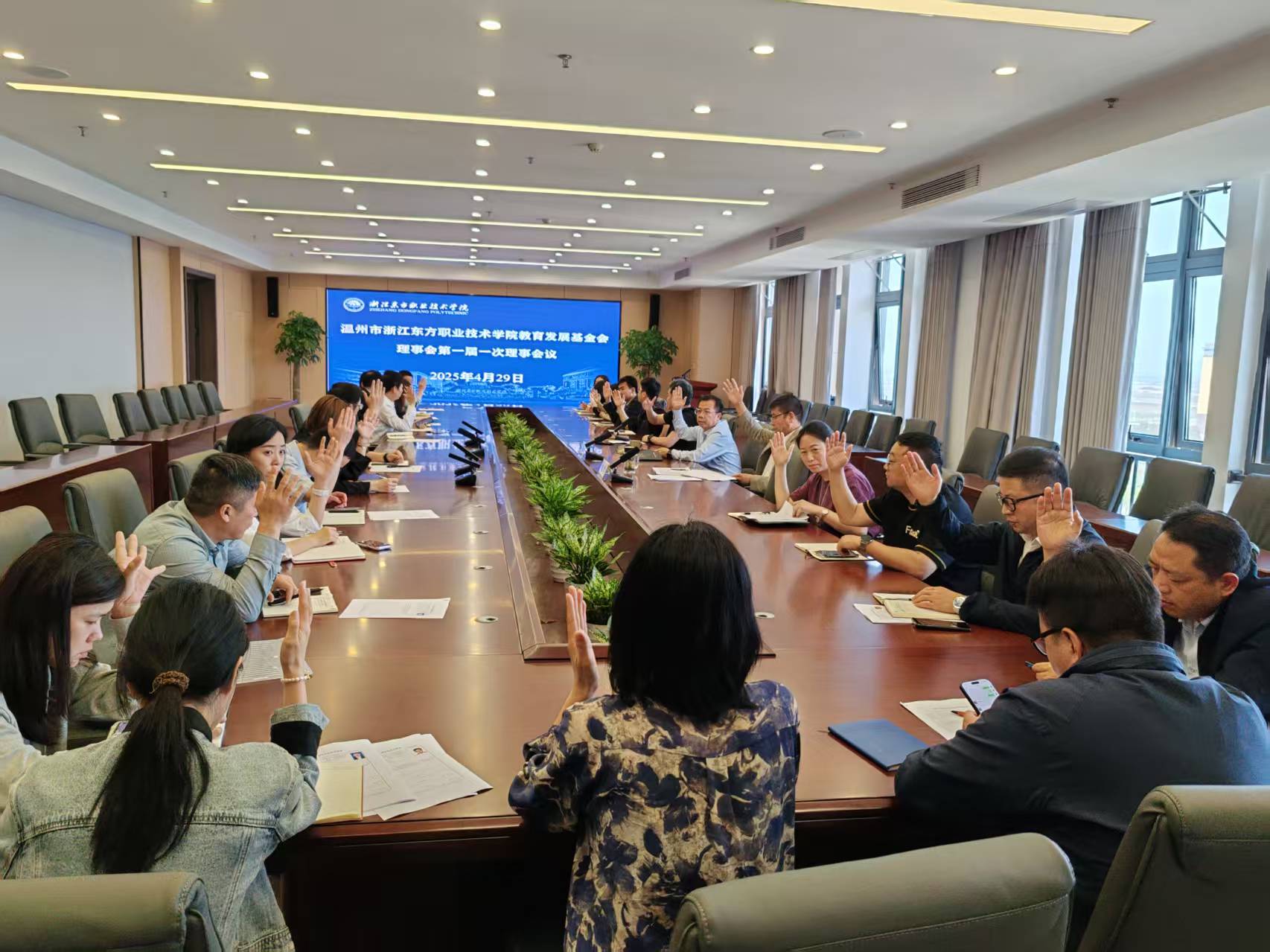 2025年4月29日,温州市浙江东方职业技术学院教育发展基金会第一届理事会第一次会议顺利召开。学校校长、党委副书记王佑镁出席会议并讲话,校领导贺文华、各相关职能部门及二级学院负责人等参会。会议由招生就业处处长、校友办主任、创新创业学院院长黄成良主持。